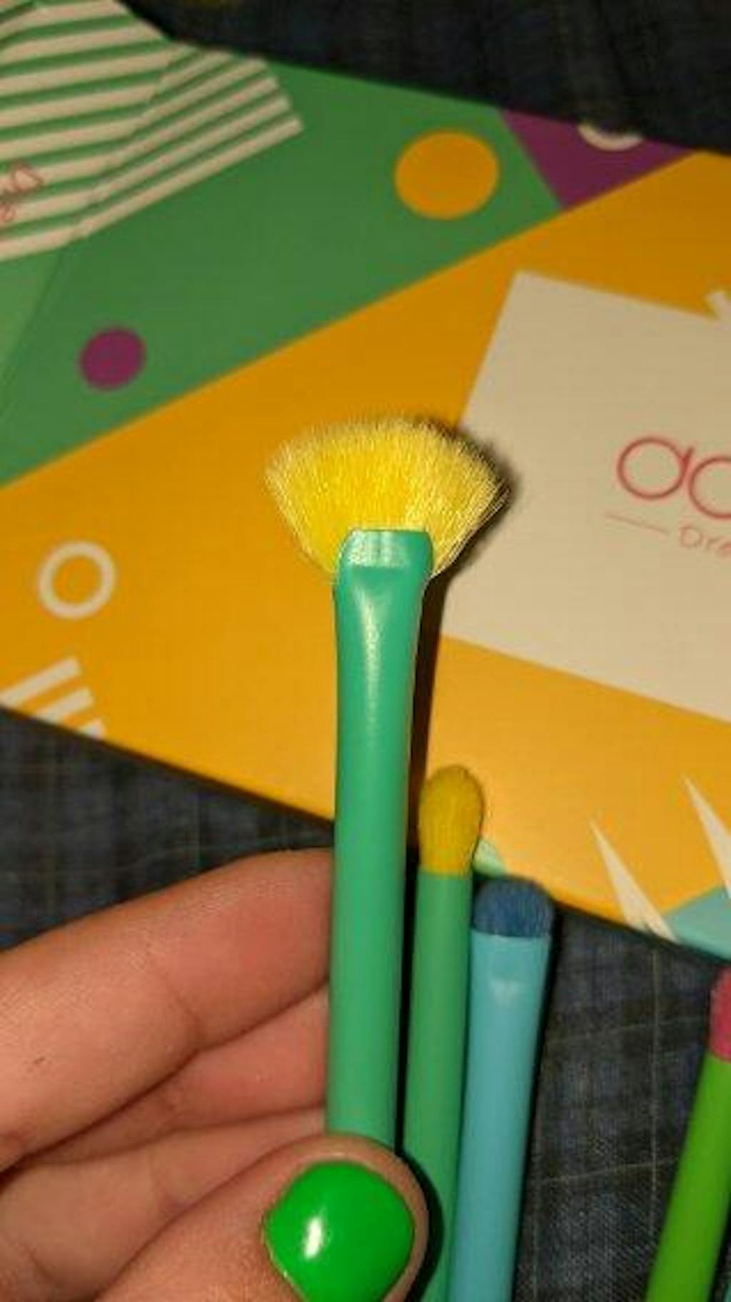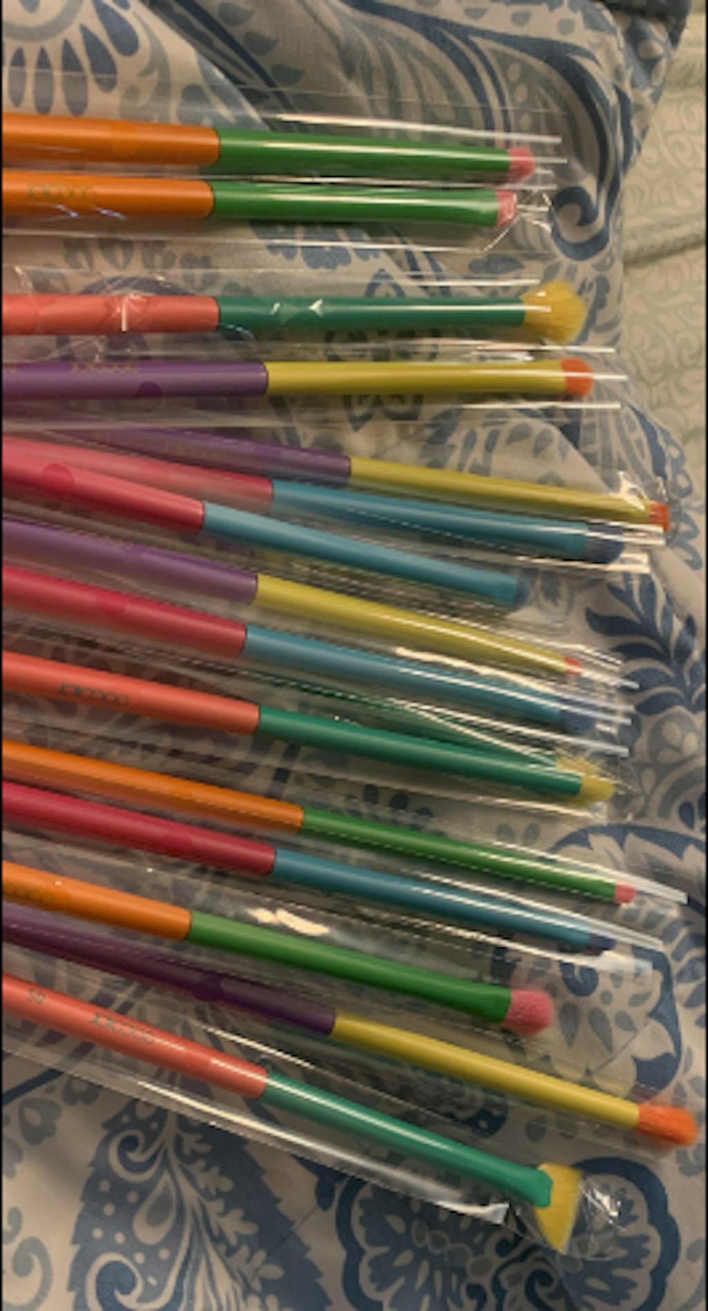I picked these brushes because they have cute colors. They arrived pretty quickly and each brush was in an individual plastic packaging inside a box. The brushes are very soft and seem durable. No hairs have fallen out yet either, I am very excited to use these brushes.