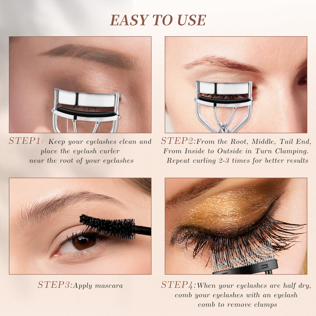 Experience the ideal eyelash curl with our ergonomic curler. Its cushioned silicone pad and secure grip comfortably lift lashes from root to tip, creating a lasting, wide-eyed look without pinching or slipping.