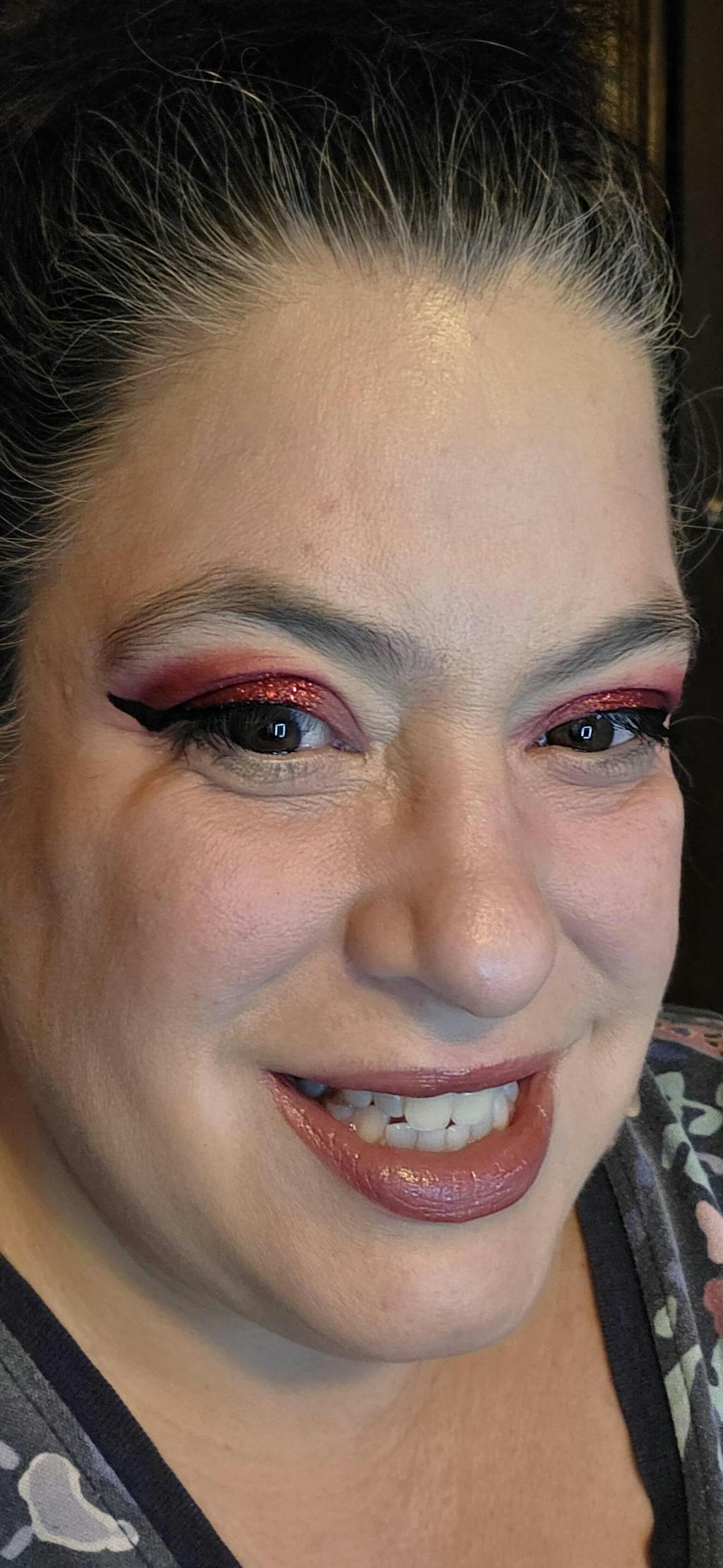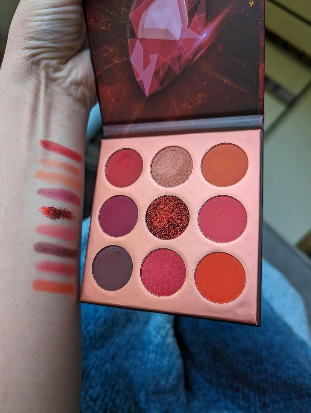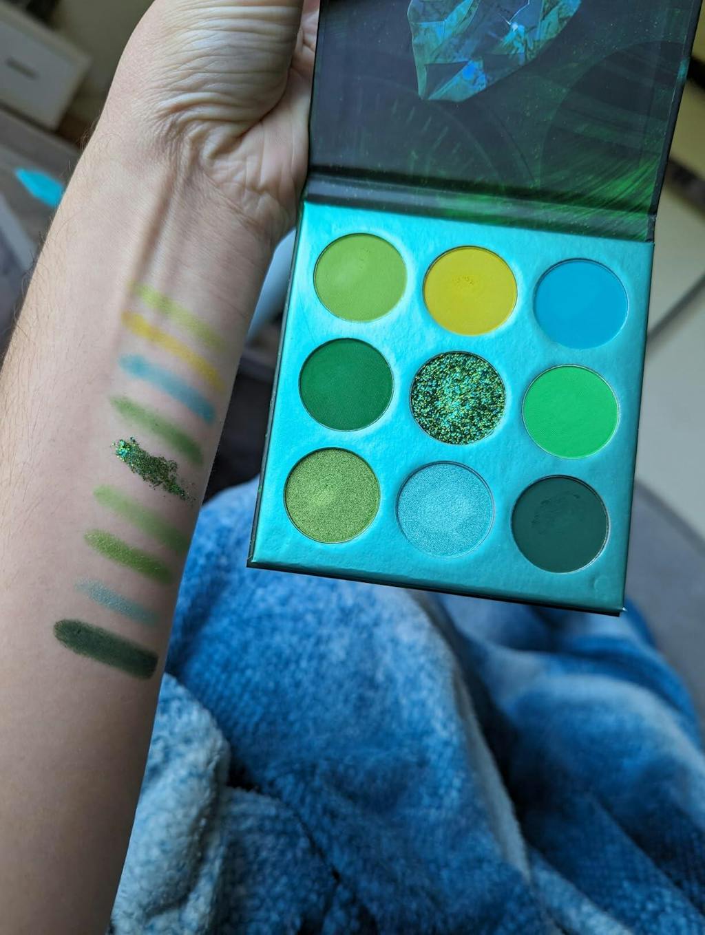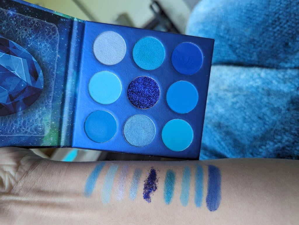 My son got me this set for Christmas! I'm older (50) but, still enjoy makeup & fun looks! I work retail so its very people-ly. I want to apply more makeup everyday till I get home! J/K. However, these colors are bright and fun! I test fired the blue colors for a frosty look as it was frigid outside. Beautiful pigment easy to blend. Im still learning but, that's part of the fun! Christmas Eve I test fired a RED look. Its not often I wear red eyeshadow. I added the glitter & it was beautiful! I got a lot of compliments! One "backhanded" compliment from a "makeup artist" whatever.